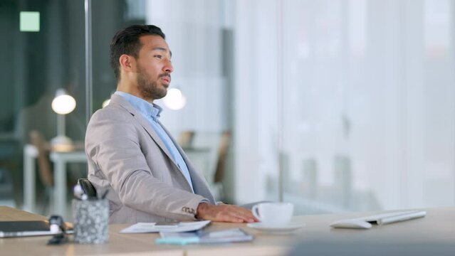 Businessman relaxing and enjoying tea, putting feet up after finishing work and typing an email or completing task using online productivity tool. Executive resting looking satisfied after a deal