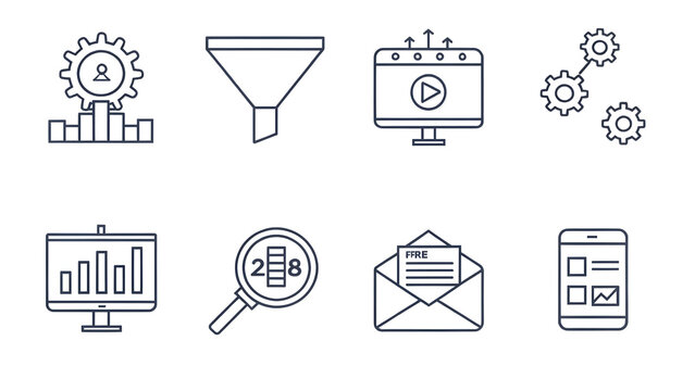 Person using laptop with digital icons for analytics and automation floating above the keyboard