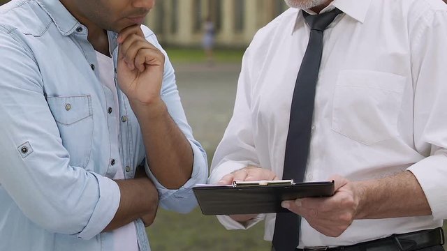 University teacher explaining student different approaches to solving problems