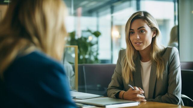 Financial Consultation: A close-up shot captures the focused collaboration between a financial advisor and their client, as they engage in a productive consultation at a desk.
