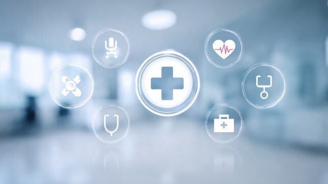 Healthcare Service Advertising Backdrop Featuring Minimalist Medical Symbols With a Soft Blurred Background and Clean Central Space for Text or Graphics