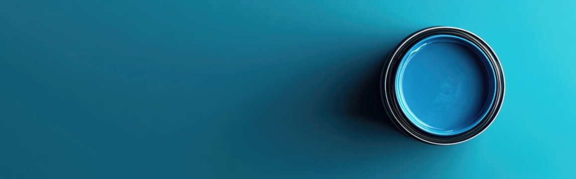 3D rendering of a repair image featuring a blue background with a blue paint can presented in a flat lay top view format with ample copy space