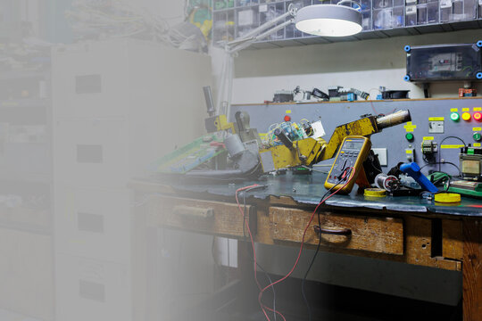 Digital Multimeter and Circuit Board with Empty Space for Text