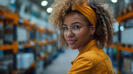 photo of professional uniformed female service technician sitting at a desk closely looking at her imac computer screen in a large