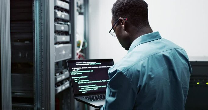 Freelancing cybersecurity admin using computer to look for company security vulnerabilities. IT engineer typing on keyboard, installing fortified code on PC to prevent cyber attacks, close up