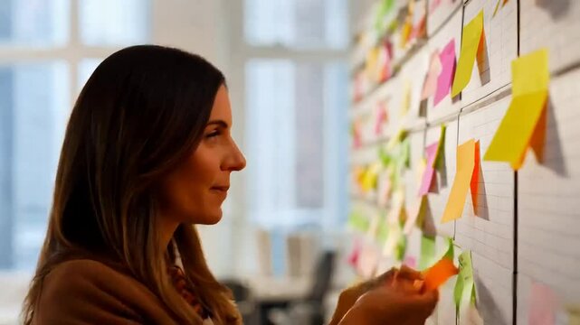 Dedicated businesswoman working solo in bright modern office