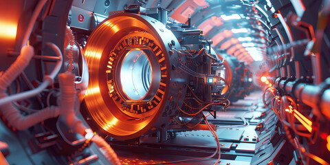 Portrait of a woman at a bustling electrical services company fearlessly troubleshooting intricate wiring systems