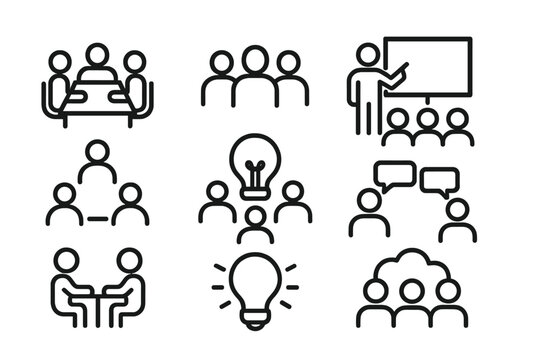 Training and development icon set Blue Monochrome Flat Design concept for trainer, professional development, supervisory, trainee, instructor, coaching, career transition, and communication