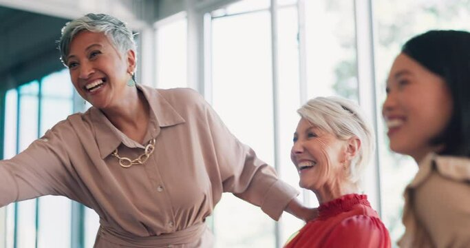 Happy, business and women with handshake for interview, candidates introduction and recruitment welcome. Smile, people and finance documents for hiring, agreement and opportunity deal of b2b process