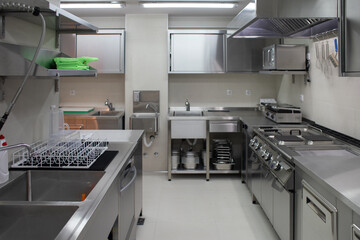 Empty restaurant kitchen with professional equipment