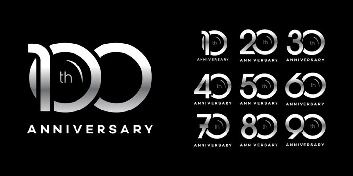 Silver Anniversary Logos 10th to 90th Decade Celebration Designs