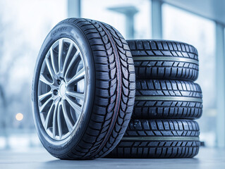 A mechanic inspects a tire, showcasing detailed tread patterns, while wearing protective gloves in a well-lit automotive workshop.