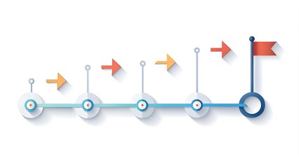 Milestone Achievement A clean, white-background illustration of a timeline with key milestones marked by flags and a rising arrow connecting them, symbolizing the achievement of business goals