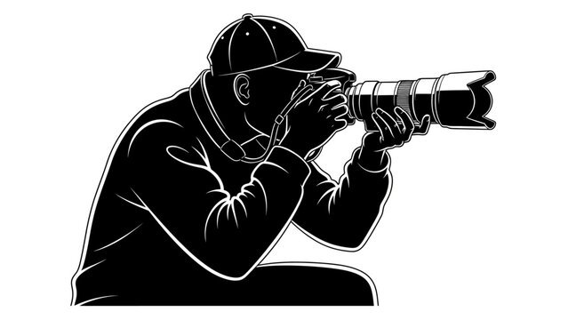 Dynamic silhouette illustration of a dedicated photographer with telephoto lens, expertly capturing the perfect shot