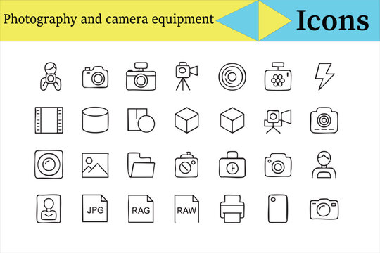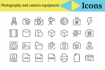 Photography and camera line icons collection for creative and studio vector design