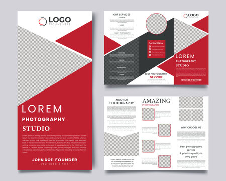 Photography tri fold brochure template design for a photography studio professional photography service flyer brochure template Layout vector
