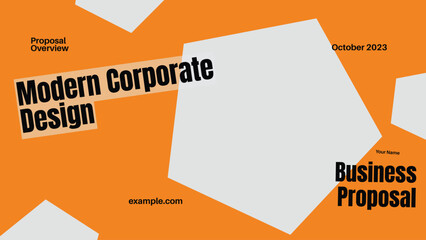 Modern Corporate Design Business Proposal Template with Orange Geometric Shapes and Minimalist Layout.