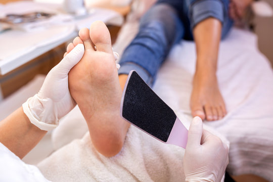Scrubbing of the sole foot area with foot file
