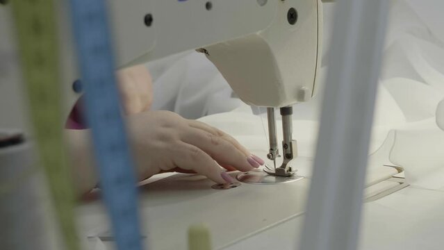 Woman sewing on a sewing machine