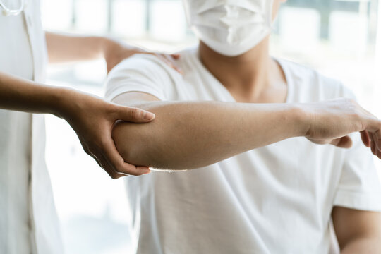A medical professional is shown standing, with a highlighted area indicating a painful back, conveying discomfort potentially caused by various conditions such as muscle strain or spinal issues.