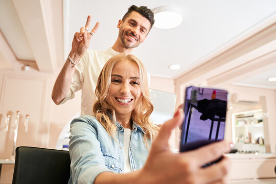 young beautiful woman client getting hair treatment in beauty salon with professional female stylist hairdresser, using shampoo and water on person head to clean and coiffure hair fashion service