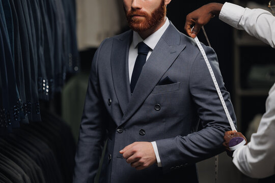 Small business owner taking order from customer at garments or tailoring shop - conept of entrepreneurship, communication and shopping