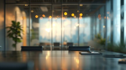 Abstract blurred background of a modern office interior, a bright and clean empty corporate workspace with contemporary design