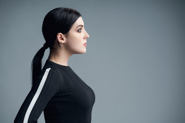 Girl profile against orange backdrop