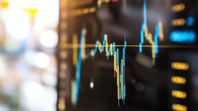 Detailed financial trading chart displaying rising market trends and stock data on digital screen : Generative AI