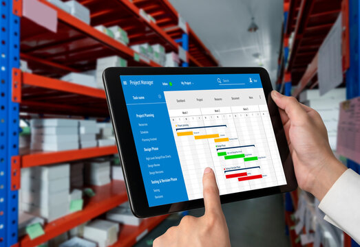 Gantt chart work schedule management  concept. Businessman planning work plan, project management diagram, sales and marketing.