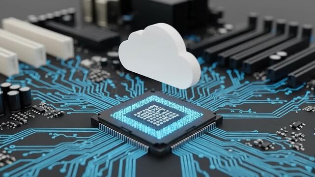 Software Development: Adult man presents virtual programming code, database, and automation icons for future IT solutions.