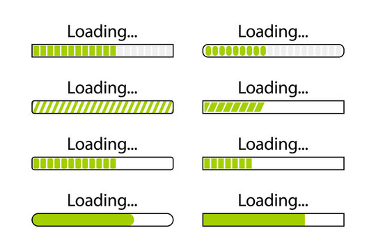 Loading bar icons set, load progress indication. Loading bar progress icons. System software update and upgrade concept. Download progress. Collection loading status, loading symbol