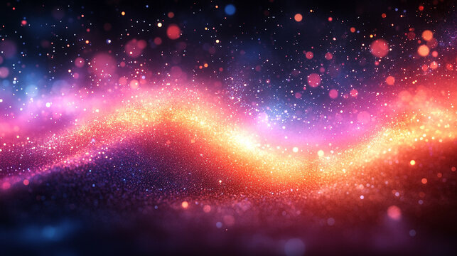 A vibrant glowing wave flows through abstract particles, symbolizing the essence of change and expansion, representing dynamic movement and growth in a modern, evolving world.