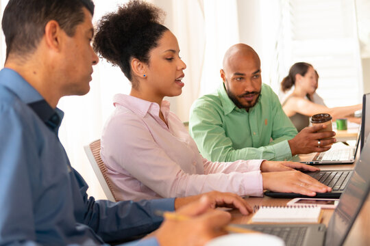 Businesswoman discussing project plan in team meeting product development Enter details in the meeting