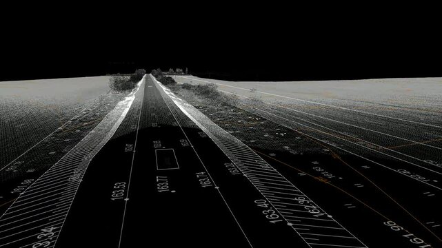 Aerial view of land is depicted with network markers indicating the planning and connectivity of land development.