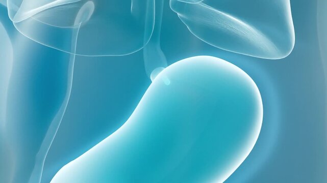 Take capsule, take probiotics, diffuse particles in the stomach, promote gastric motility, and show the whole process of medication.3d animation.