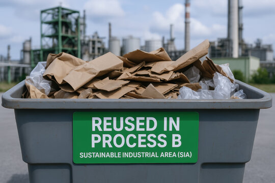 Sustainable industrial area sia promotes reuse of materials process B with focus reducing waste and supporting eco friendly practices industrial