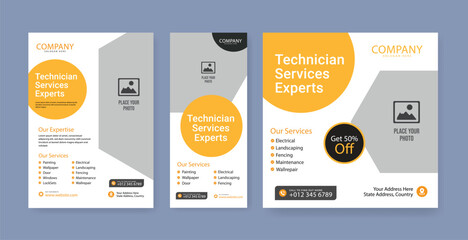 Electrician abstract banner template, electrical service job advertisement, wireman rectangle size ad, electricity plug flyer leaflet concept