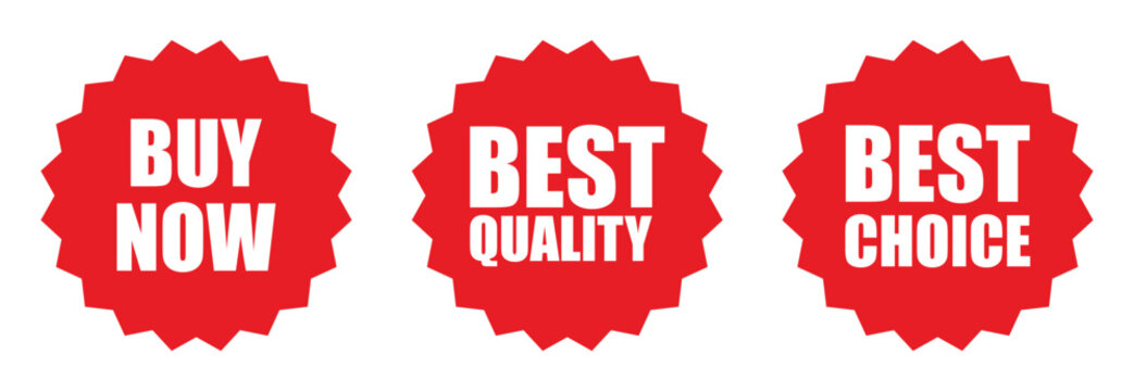 Vector set features "BEST SELLER" symbols in gold and black across four distinct shapes (star, circle, hexagon) with dark red ribbons. It is ideal for e-commerce and marketing to highlight top-selling