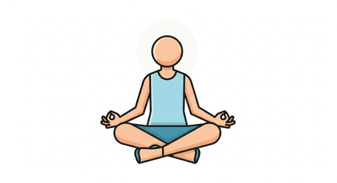 Serene vector illustration of a person meditating peacefully in a seated posture promoting mindfulness and inner calm with soft artistic styling