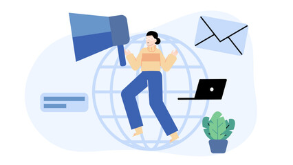 Modern digital marketing event announcement with laptop on desk