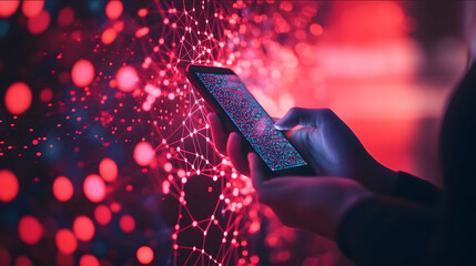 Close-up of lips being applied with vibrant red lipstick, matched perfectly with glossy red nails. Ideal for cosmetics branding, beauty tutorials, editorial campaigns, and product advertising
