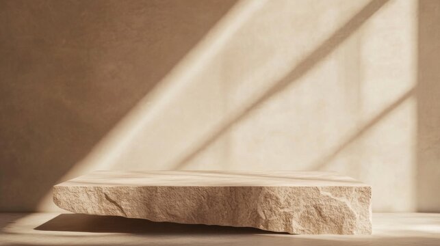 Pastel stone Podium background. Beige Concrete Material place for the product Display Presentation. Kitchen, cosmetics, jewellery podium advertising mockup photography in luxury style.