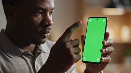 Man holding smartphone with green screen for app promotion or video editing, showcasing modern technology and connectivity solutions