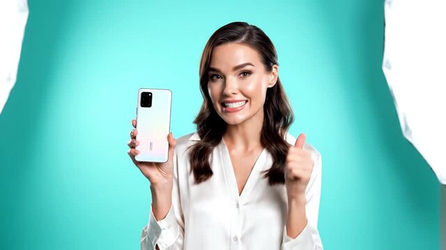 Woman Presenting New Smartphone Features and Benefits.
