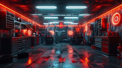 metal blank tabletop with blurred automotive tools and parts in the background suitable for promoting automotive products