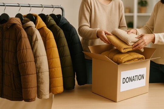 Winter Clothing Donation Campaign Visual with Coats Ready for Community Charity Distribution