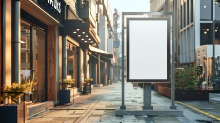 White blank billboard on city street sidewalk for promotion and advertisement mockup material background wallpaper AI generated image