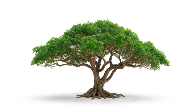 lone tropical tree on white backdrop for promotional and architectural purposes