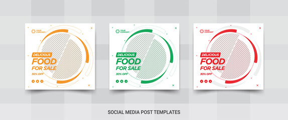 Delicious food sale social media square post templates. Promotional banners design